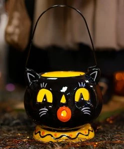 Hot Sale 🤩 Traditions Lighted 🧛 Halloween Skeleton & Black Cat Spinning Water Globe Carriage ✔️